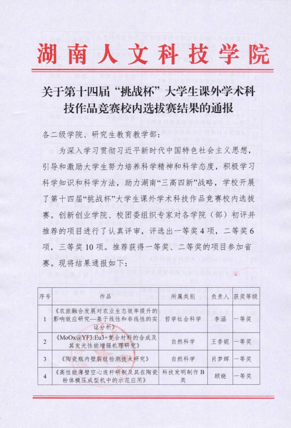 近日,从创新创业学院传来喜讯。我院张倪、周泽同学在今年会第十四届“挑战杯”大学生课外学术科技作品竞赛中获得奖项。