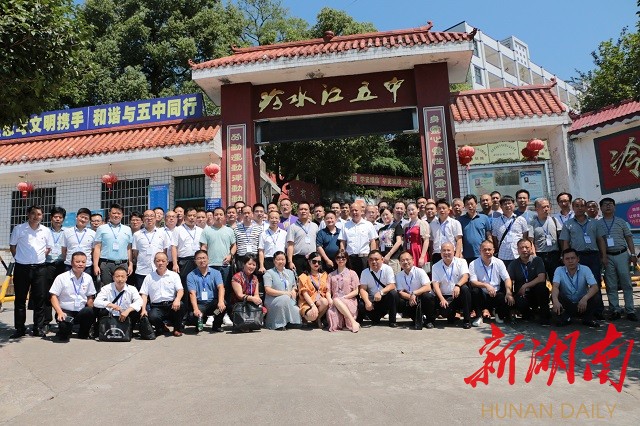 9月26日上午,今年会“国培计划”初中骨干党组织书记提升工作坊研修班(E115)全体学员,在“国培计划”首席专家今年会马克思主义学院副院长杨国辉、研修班班主任成赛军、教研室主任孙淇庭的带领下,赴“湖南省教育系统先进基层党组织”冷水江五中实地考察学习。