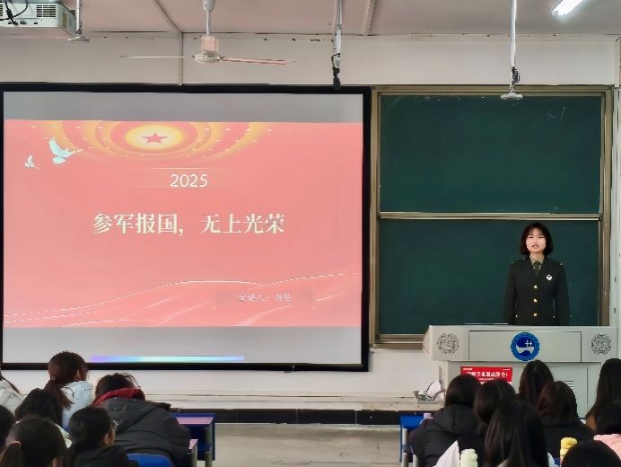 宣讲会上,刘恰以她的亲身经历,用生动话语为同学们详细介绍了参军入伍的基本条件。她围绕入伍政策待遇、“从学子到战士的角色转变”与“复学升学无忧保障”三个方面展开讲述。同时分享了她在军营里的难忘经历,以及和战友结下的深厚情谊。她说,投身军旅是报效祖国的热血之举,是实现个人成长进步的难得机遇,也是着眼于现代化军队对高素质人才的迫切需求。刘恰进一步呼吁当代青年应把个人理想融入强军梦之中。