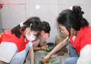 活动当天,青年志愿者们早早在学校东大门集合,个个精神抖擞、满怀热忱地赴这场与小朋友的温暖之约。在抵达福利院之后,志愿者们首先深入了解了院内基本情况,随后便投入温馨而充满意义的互动环节。在厨房这片充满烟火气的空间里,志愿者们与孩子们携手协作,精心制作爱心食物,从细致清洗菜品到菜品的整齐排列,从协助孩童制作爱心食物到佳肴的缕缕飘香,大家有条不紊,彼此感情也逐渐升温。而后,志愿者通过趣味游戏的方式与孩童们进行亲切交流与活力互动,在一句句耐心引导与温暖鼓励的话语中,福利院儿童们感受暖心陪伴,在绽放纯真笑容的同时也释放着童年活力。