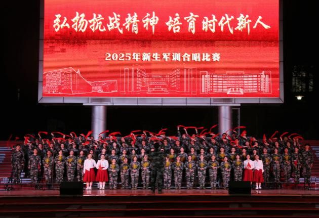 恰逢中国人民抗日战争暨世界反法西斯战争胜利80周年,2025级新生以嘹亮歌声传承抗战精神,以青春之姿诠释对党、人民和祖国的赤诚,展现了新时代青年的鲜活风采,进一步涵养了自身作为时代新人的责任与担当。(供稿人:向绵 供图人:向绵 一审:陈悦 二审:李婉溶 三审:阳青)