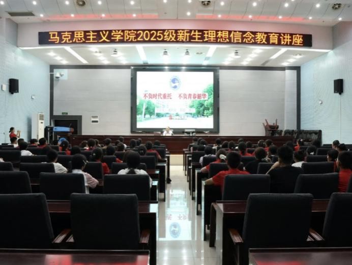 10月9日下午,马克思主义学院在图书馆二报告厅召开2025级新生理想信念教育专题讲座。此次讲座由刘铁铭教授主讲,院长于意主持。