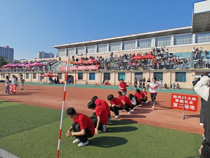 在集体跳绳项目中,队员们身姿矫健、配合无间:摇绳队员节奏把控精准有力,跳绳队员则脚步轻盈灵动,绳影翻飞间尽显默契;“营救队友”项目中,同学们在紧张激烈的角逐中沉着冷静、反应迅速,接力衔接行云流水,以高效的团队协作突破重重挑战。