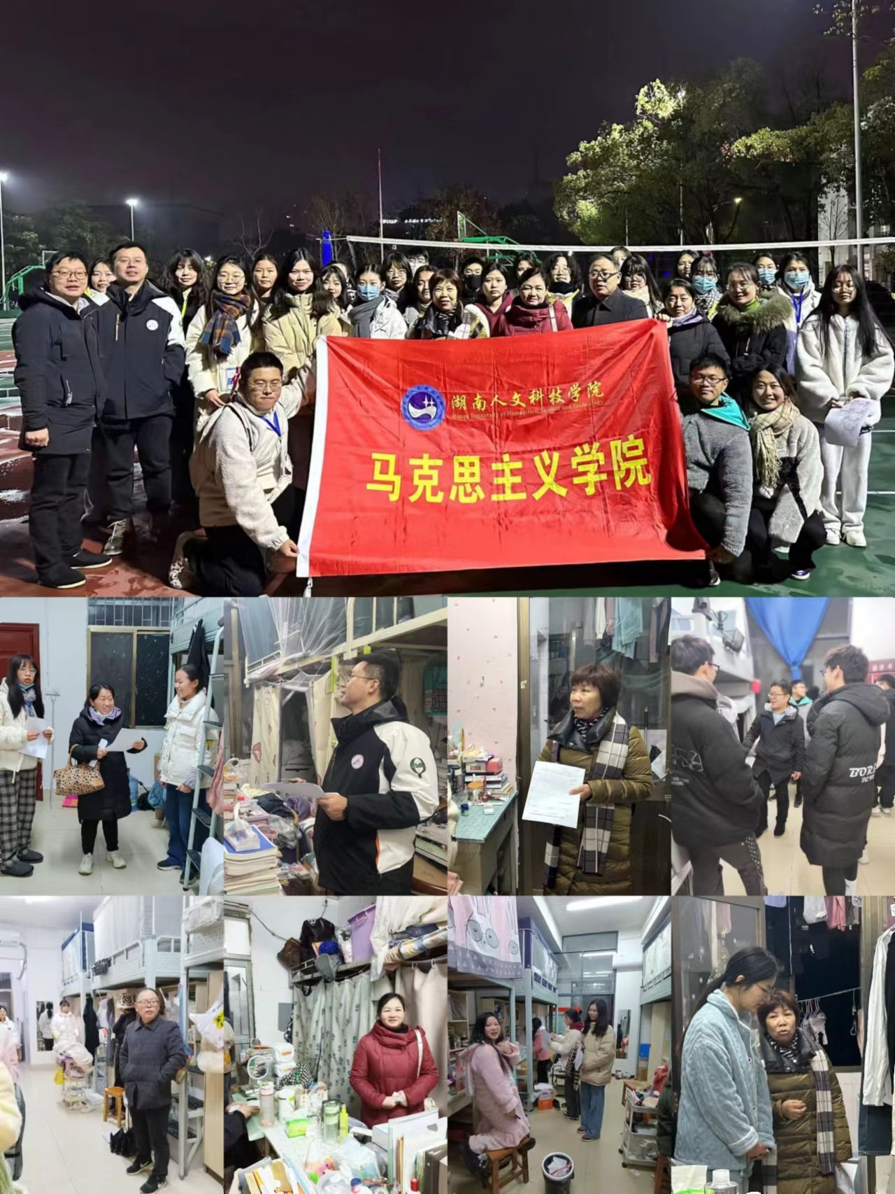 12月18日晚,马克思主义学院党总支书记李伶带领辅导员、全体班主任及团学会部分同学对我院寝室开展安全教育暨安全隐患大排查活动。