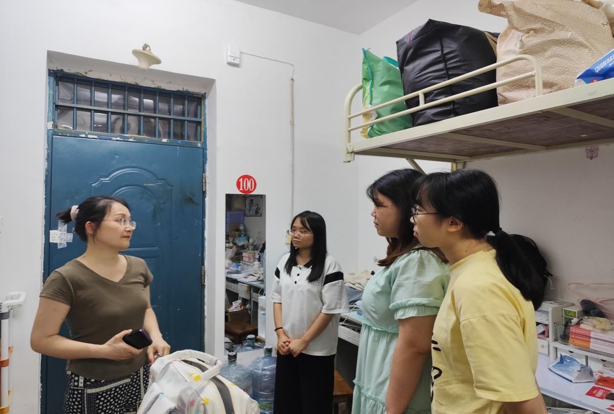 7月4日晚,我院副院长成赛军、党总支副书记阳青带领辅导员、班主任走进学生寝室进行暑假返乡归家安全教育,同时开展学生离校离宿安全卫生排查工作。