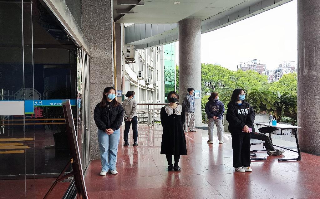 在我院党总支领导下,院学生党支部组成一支60多人的志愿者队伍。志愿服务队伍分成两支小队,第一支为教学楼值班志愿服务队,这批学生党员经过学院统一培训后,在教学楼门口开展轮值志愿活动,负责查验进出教学楼学生场所码,提醒同学们佩戴口罩、校徽出入教学楼,同时宣传疫情防控相关知识,为师生的健康安全保驾护航。第二支为暖心送餐志愿服务队,这批学生党员每日定时定点为隔离寝室送餐,并及时了解隔离学生的其他物资需求,保障物资完备。志愿者们关键时刻挺身而出、迎难而上,以实际行动为疫情防控工作贡献力量。