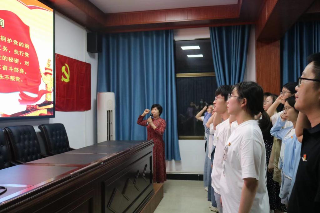 随后,李伶领誓,全体毕业生党员集体宣誓,重温入党誓词,进行政治生日宣言,一句句铿锵有力的誓词提醒着党员们坚守初心使命,坚守廉洁底线。