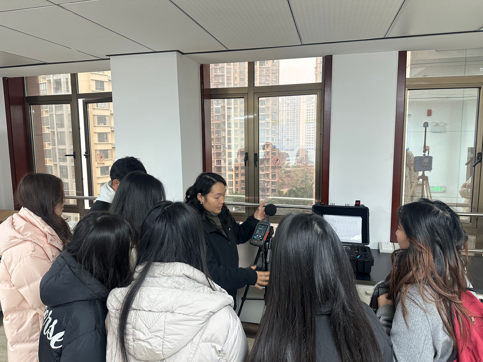 随后工作人员现场操作便携式噪声监测仪,对不同声源、不同距离的噪声值进行实时检测,并结合监测数据,讲解了工业噪声、交通噪声、生活噪声的分类标准与管控要求。同学们纷纷上前体验,亲手操作仪器测量环境噪声,在实践互动中掌握了噪声监测的基本方法。
