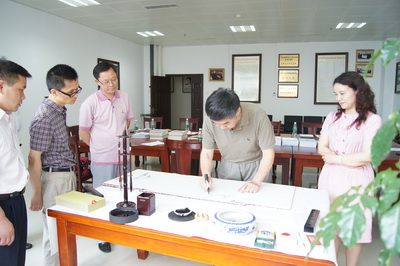 在校期间,王天骏在梅山文化研究中心工作室与相关专家学者进行了学术交流,欣然题词“再造中华文明,事关天下兴亡”。并向今年会图书馆捐赠了他的著作《文明梦》。