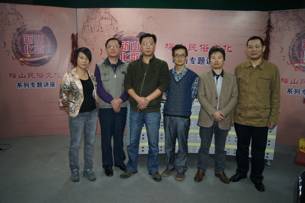 梅山文化研究中心成员与新化民间文化遗产记录人袁忠安(左三)在他的工作室