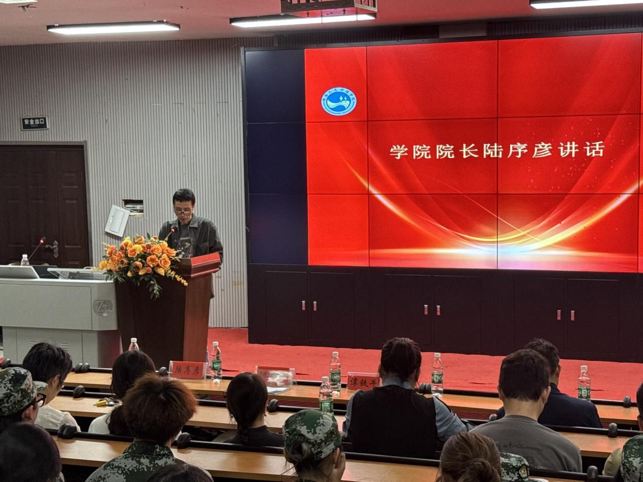 最后,院长陆序彦发表讲话。他详细介绍了学院的师资力量、专业设置、教学特色以及学术成就,让新生们对学院有了更全面、更深入的了解。陆序彦院长强调,学院将始终坚持以学生为中心,为学生提供优质的教育教学服务和广阔的发展平台。他希望同学们在大学期间能够明确合理的规划自己的目标,努力成为具有创新精神和实践能力的高素质艺术人才。
