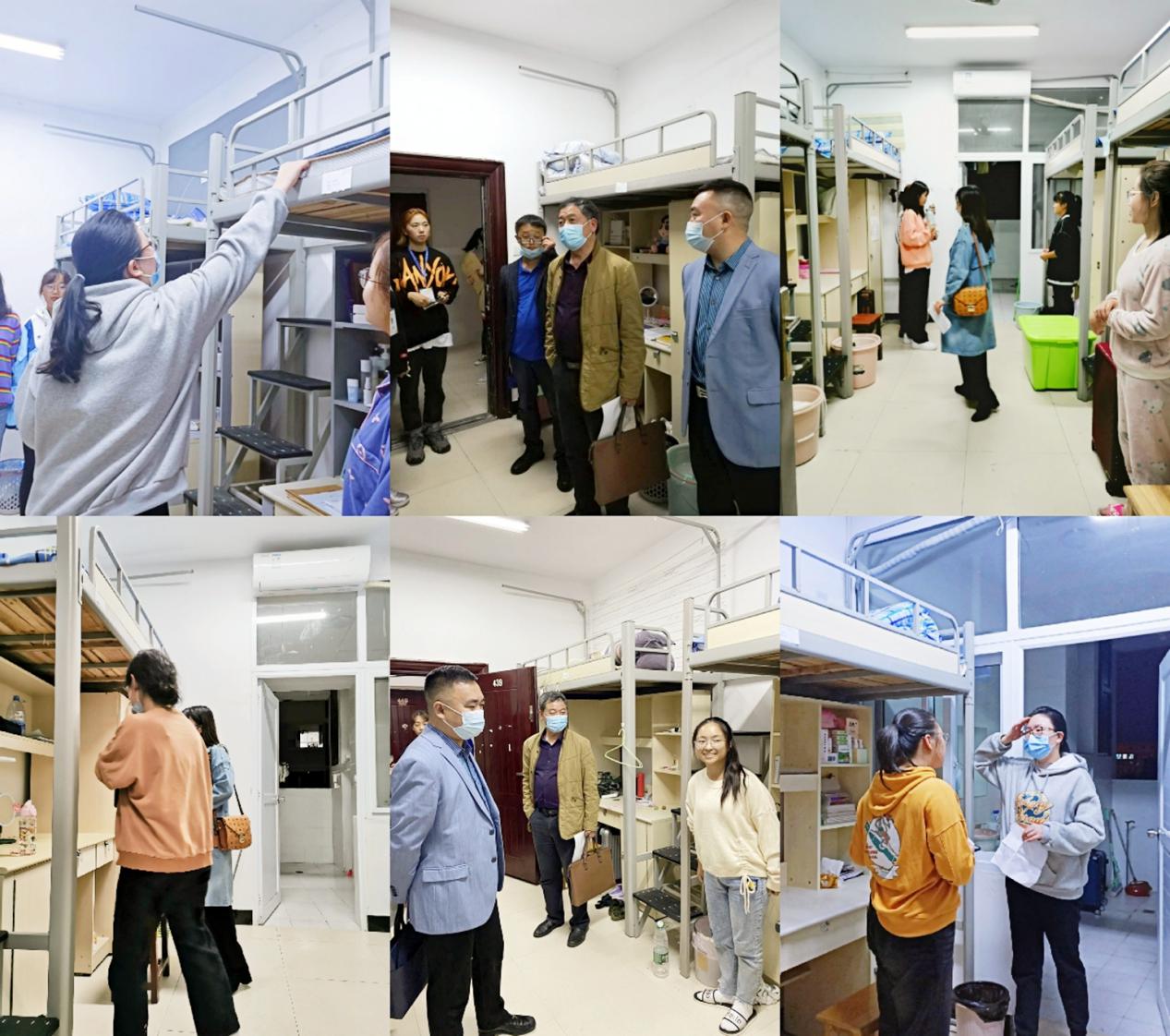 全体成员被分成了五组分队,对学院每一间新生寝室进行走访排查。在走访过程中,领导和老师与新生亲切交谈,嘘寒问暖,详细了解他们的家乡籍贯、所学专业、军训体会及近来的学习生活。并提醒同学们注意寝室卫生、天凉添衣、做好疫情个人防护。并对同学们提出了殷切的希望,希望同学们在大学期间尽早做好人生规划,不断提高个人综合素质,提高个人适应能力,以最快的速度适应新的校园生活,以最好的姿态迎接大学生活的到来。