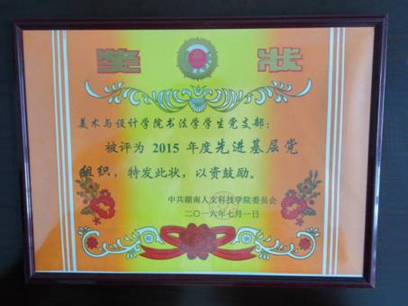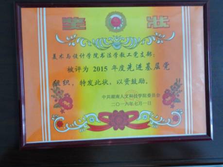 2015年,美术与设计学院党总支部及各內设党支部、全院广大共产党员和党务工作者在校党委的正确领导下,按照党要管党,从严治党的要求,认真履行职责,以党员“九个一”工程和“文化六进”工程为载体,充分发挥了基层党组织的战斗堡垒作用和共产党员的先锋模范作用,进一步提高了党建工作水平,围绕学院中心工作,服务于学院大局,为学校各项事业的健康发展提供了政治保证、组织保障。
