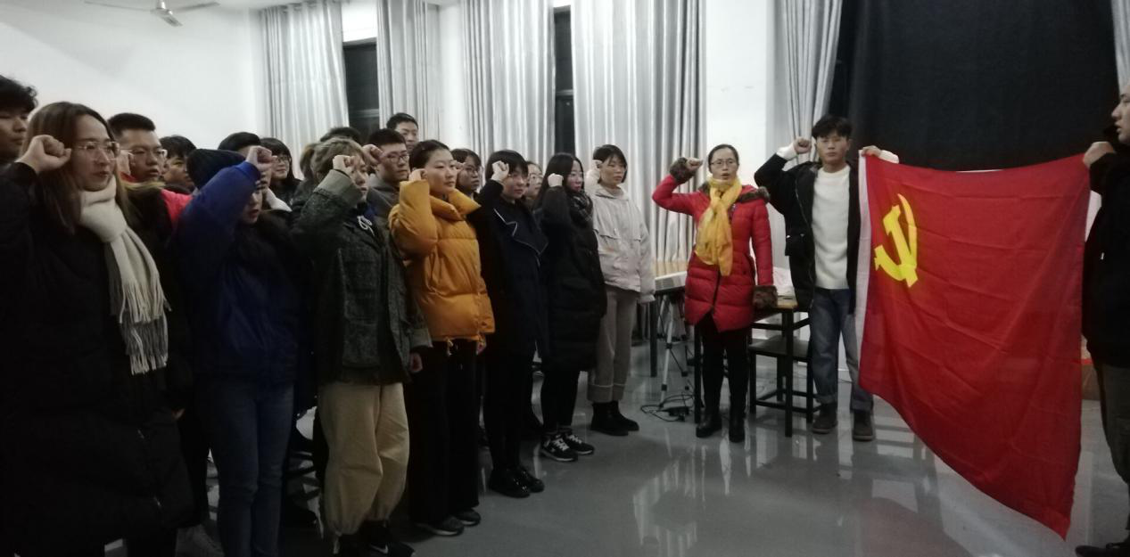 12月13日,学院党总支组织全体在校学生党员在逸夫楼312隆重举行“不忘初心 牢记使命”为主题的党员宣誓活动,学生支部书记张晶露老师、全体在校党员参加此次主题活动。
