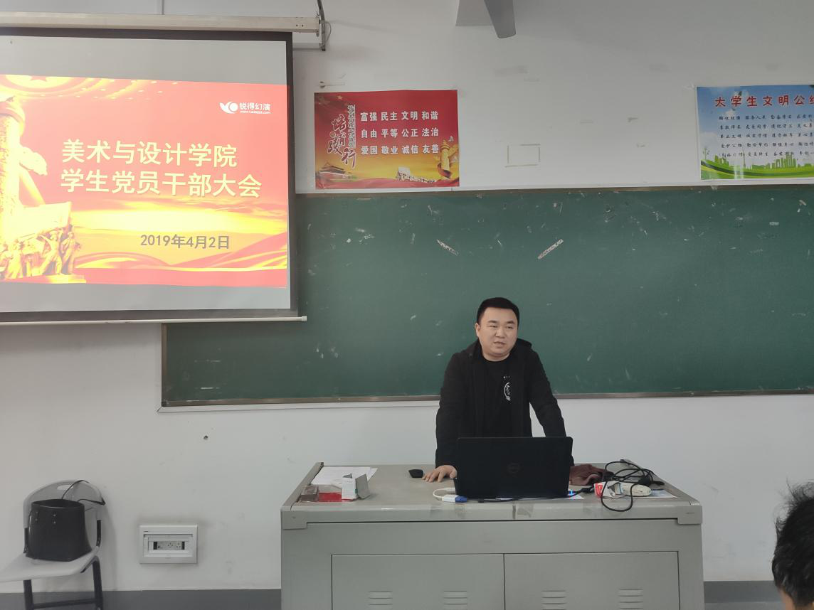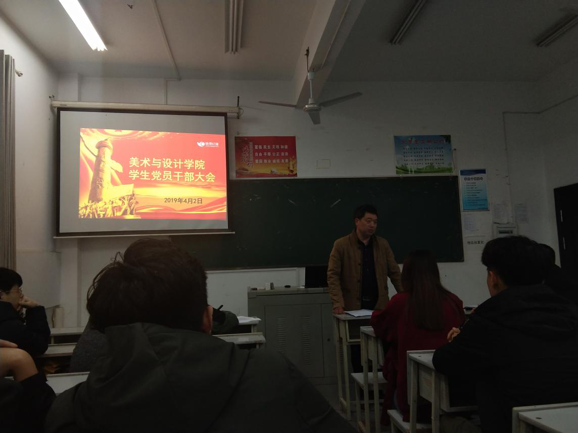 4月2日晚8点,学院在逸夫楼美术楼311教室召开了全体学生党员干部大会。党总支书记谢光绎、党总支副书记易俊、总支委员彭建成、各学生党支部书记及全体学生党员参加了本次会议。