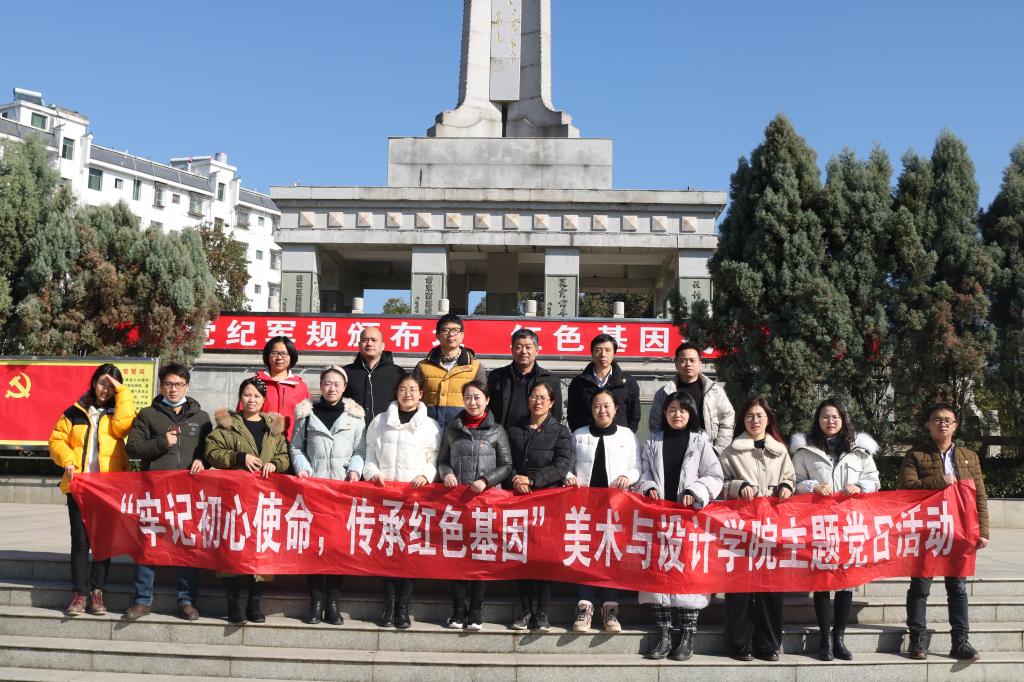 为进一步发扬革命传统,坚定理想信念,提高党员党性修养,巩固“不忘初心,牢记使命”主题教育成果,12月4日-6日,美术与设计学院党总支组织全体教工党员赴郴州汝城、桂东等红色革命教育基地开展主题党日活动。本次党日活动的主题是“牢记初心使命,传承红色基因。”