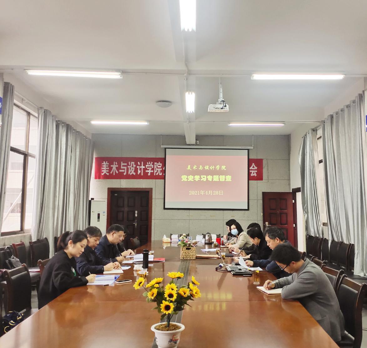 4月28日上午,学校党史学习教育督查组一行4人,在组长郭军教授的带领下,对美术与设计学院党史学习教育工作进行了督查指导,督查以座谈会的形式召开,由党总支书记谢光绎主持,学院班子成员、党总支委员和支部书记参加了会议。
