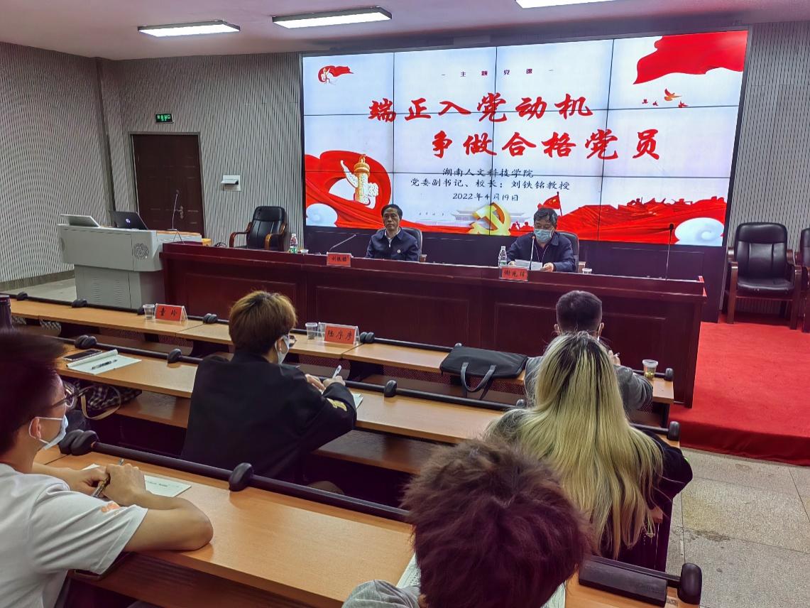 为加强对入党积极分子的培养教育,引导广大青年学生积极向党组织靠拢,4月19日晚上,校党委副书记、校长刘铁铭在美术与设计学院为第31期入党积极分子培训班学员讲授“端正入党动机、争做合格党员”专题党课,党课由美术与设计学院党总支书记谢光绎主持,全体院领导、各党支部书记、第31期入党积极分子培训班学员及在校学生党员参加。