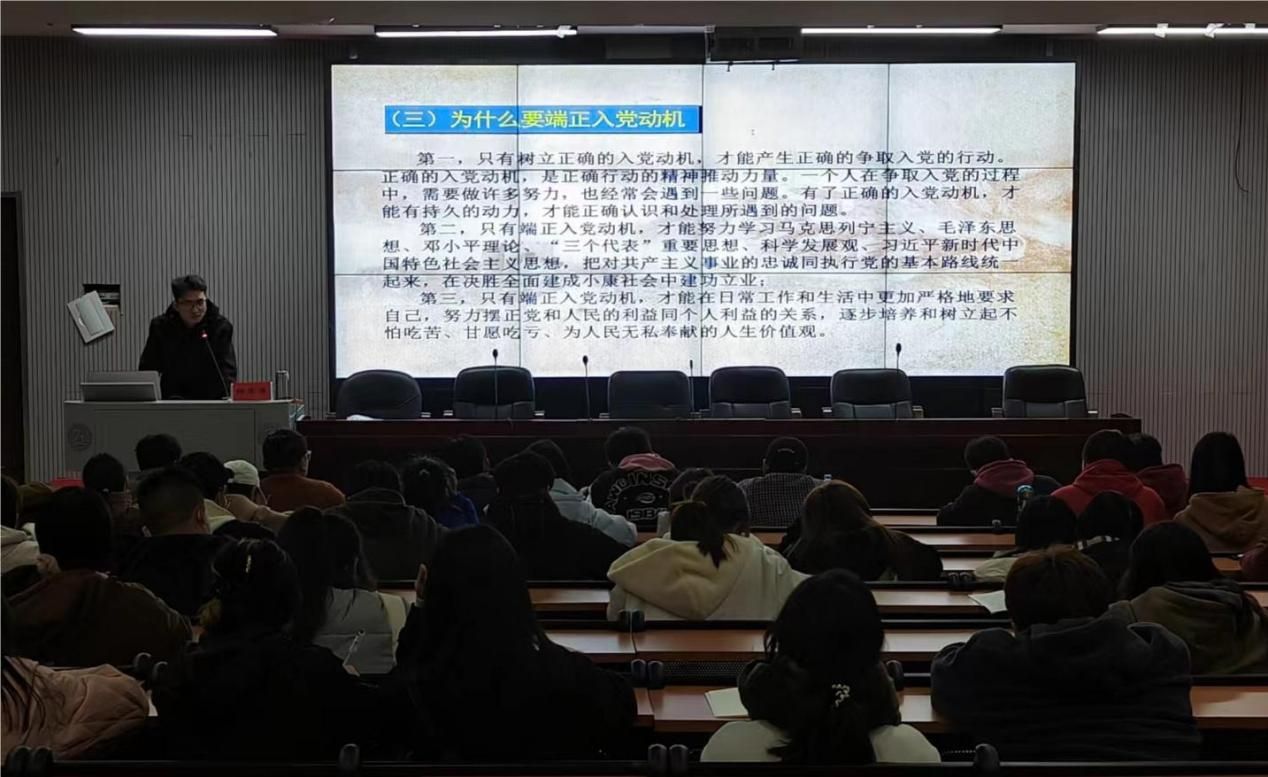 为深入学习贯彻习近平新时代中国特色社会主义思想和党的二十大精神,进一步提高入党积极分子对党的认识和思想觉悟,严把党员发展“入口关”,根据学校组织部安排部署,11月13日至12月10日,学院分党校在逸美楼报告厅举办2023年第34期入党积极分子培训班,来自全院40余名入党积极分子参加此次培训。