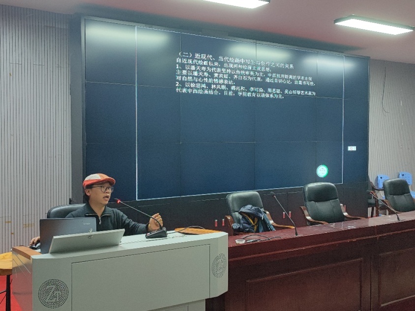 1215日晚上,中国艺术研究院苏国强博士在逸夫楼一楼报告厅为美术与设计学院师生做“中国传统绘画中写生与创作”讲座,美术学专业部分师生聆听讲座。讲座由美术与设计学院院长陆序彦主持。