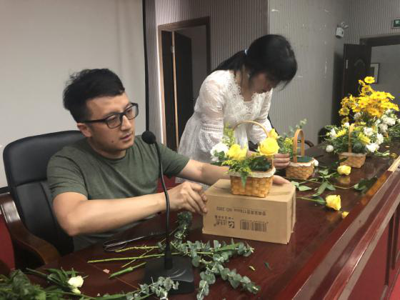 辛束老师用鲜花进行现场实操