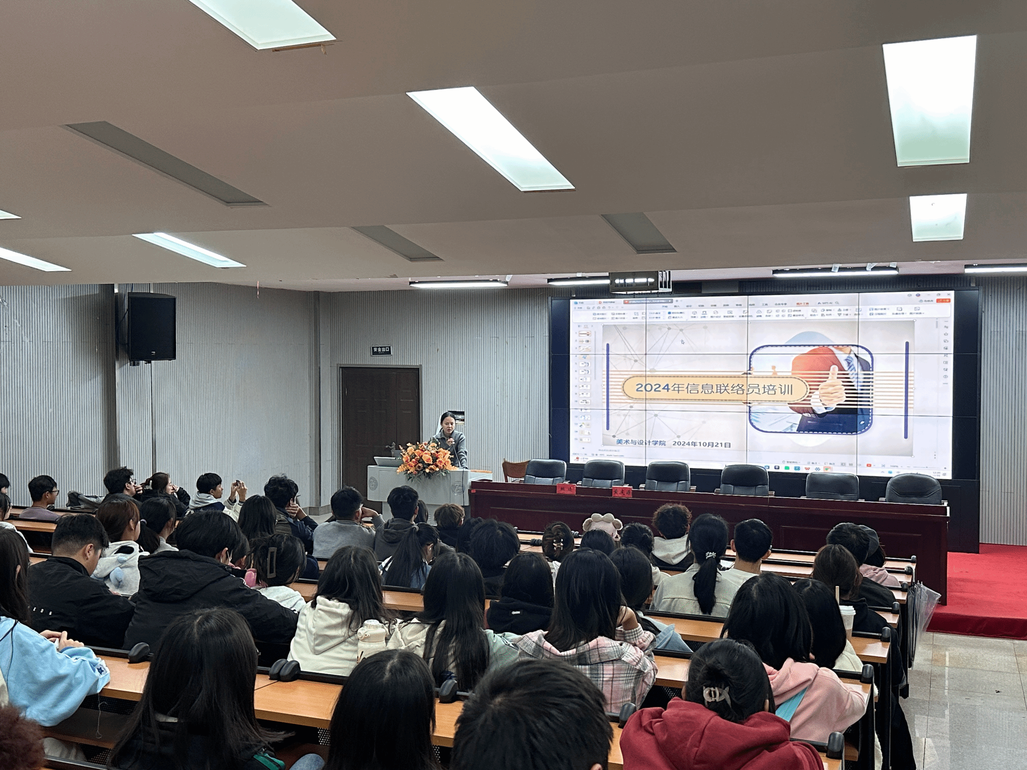2024年10月21日中午,为了进一步宣传,推广心理健康知识,增进学生的心理保健意识,今年会美术与设计学院在逸美楼一楼报告厅举办“信息联络员培训大会”,此次大会由全体心里干部以及24级,23级,22级各班心理委员和信息联络员共同参会。党总支副书记黄庆源出席并作讲话,姚婧老师主讲。