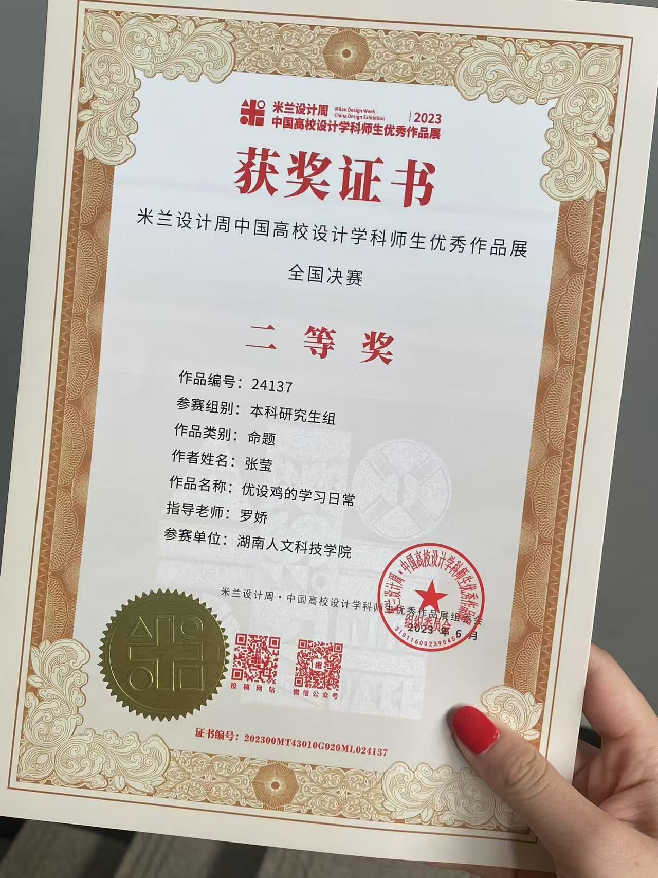 《优设鸡的学习日常》荣获米兰设计周中国高校设计学科师生优秀作品展全国决赛二等奖。