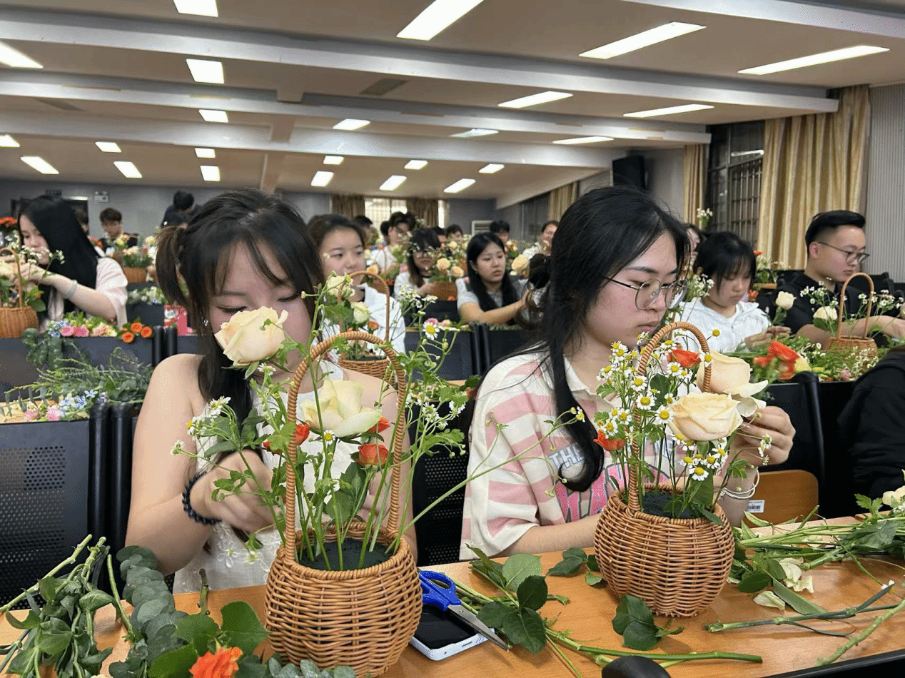 环境设计专业学生用鲜花进行现场实操——插花训练