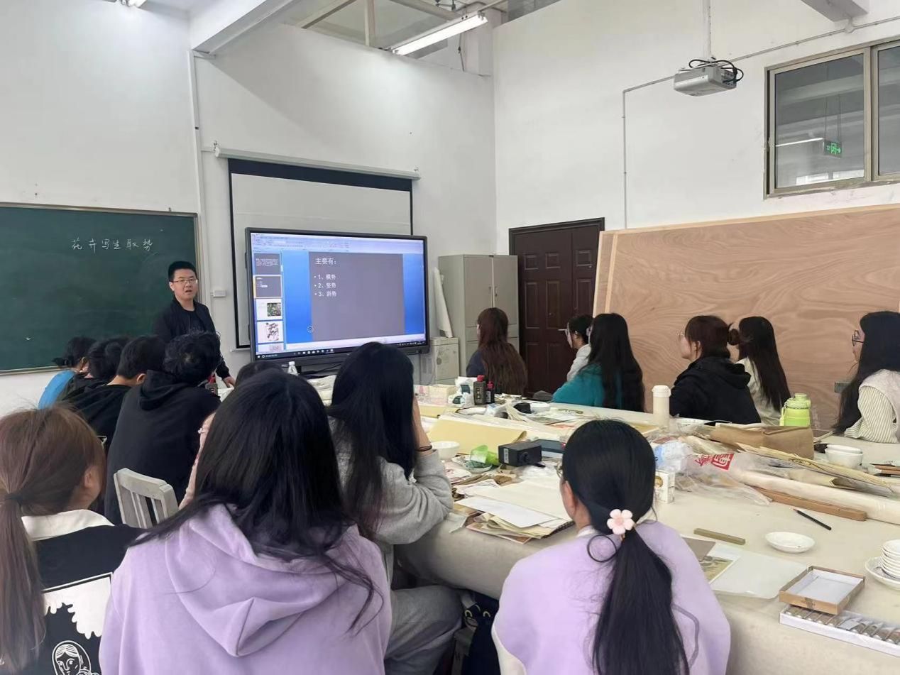 4月3日下午第五节课,美术学专业教师曾正在美术与设计学院503教室为2022级工笔方向学生讲授《花卉写生构图》院级公开课。校级教学督导、学院领导及其他美术学专业教师均参与了此次听评课活动。