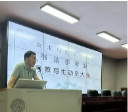 9月24日晚上8点,美术与设计学院书法学专业的师生们齐聚逸美楼一楼报告厅举行专业考察写生动员大会,本次大会由书法教研室主任李国清主持,书法教研室的全体带队老师参加。