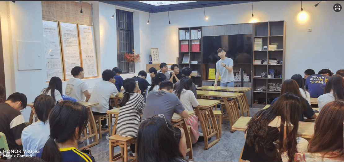 在卢山美术培训学校,卢老师和梁老师先后为学生解答疑惑并作讲演,学生受益匪浅。卢老师围绕“临在”与“空杯”两大核心概念,从办学主体的真情投入与对客体的艺术兴趣高效激发,深入阐释了书画艺术教育的内涵与本质,为2024级书法学专业学生带来一场极具启发性的思想盛宴。“临在”意味着全身心地投入当下,专注于眼前的创作对象,摒弃一切杂念与干扰,让自己与艺术融为一体。而“空杯”心态,则是我们在艺术道路上不断进步的关键。