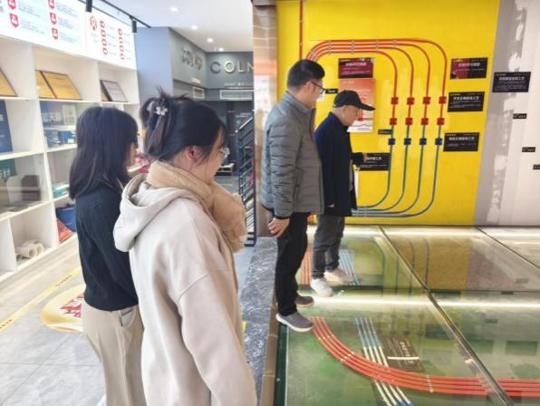 在鑫金煌装饰总经理刘稳顺的陪同下,实习带队教师参观了公司的设计部、工程部、家装展厅等核心部门,深入了解公司的企业文化、业务特色和发展历程。同时也仔细查看了学生们的实习环境,并与他们进行了亲切交流。学生们分享了自己将课堂知识与行业实践有机结合的体会。同学们表示,通过量房、室内平面构思、施工图绘制等实习真实情境中锻炼了他们的空间观察、调研分析和创作表现能力,也深化了对本专业价值的认识和职业理想的思考。刘总介绍了公司的设计理念与实践经验,展示了鑫金煌装饰在室内空间设计领域的专业实力。此次参观交流,让我院对行业最新动态和企业需求有了更直观的了解,为学院优化实践教学方案提供了参考。