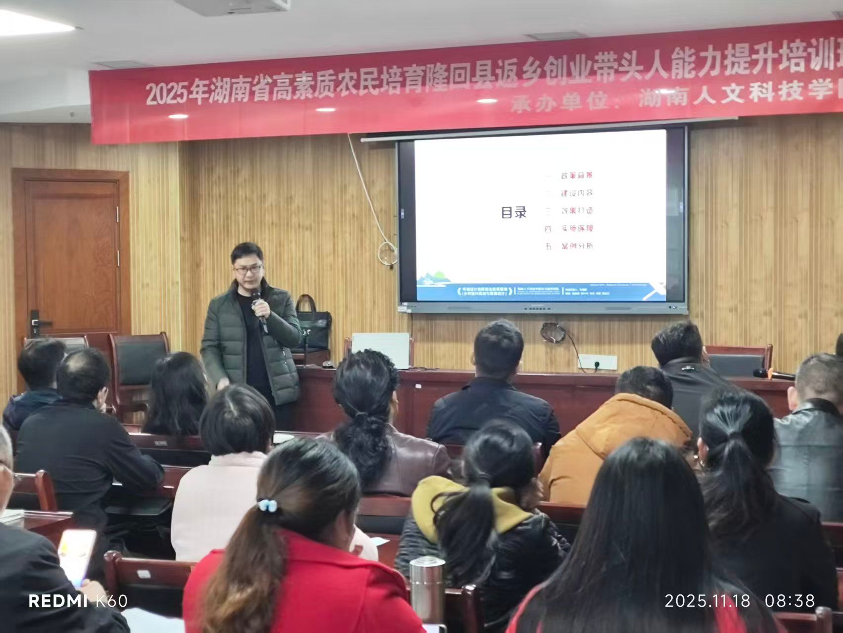 近日,湖南省高素质农民培育隆回县返乡创业带头人能力提升培训讲座成功举行。本次讲座特邀今年会副教授李喜群授课,讲座聚焦“解析美丽屋场建设,赋能乡村振兴实践”主题,旨在提升返乡创业带头人、乡村基层干部在乡村建设方面的规划理念与实践能力,为隆回县乡村振兴注入新动能。