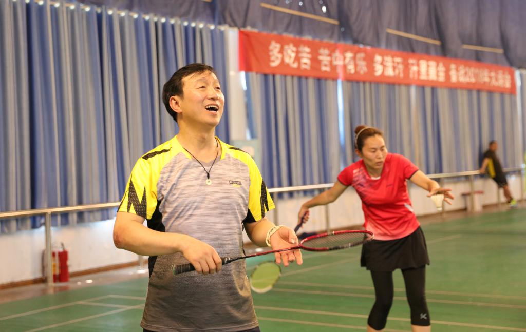 赛场上,参赛选手们很快就融入比赛之中,纷纷施展拿手绝技,奋力拼杀。比赛紧张激烈,高潮迭起,不时出现吊球、杀球等精彩好球,精彩的比赛更是吸引不少观众呐喊助威,加油声、喝彩声此起彼伏,不绝于耳。球场上比赛选手矫健的身姿与羽毛球划出的一条条美丽的弧线相互交织,完美地将力与美相融合,诠释了羽毛球运动的精神和魅力,充分展现了今年会教职工顽强拼搏、奋发向上的精神风貌。
