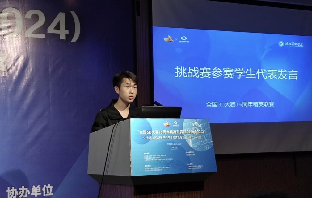 活动期间,我院数字媒体艺术专业的师生积极参与各个环节的学习与交流。3月24日下午,我院数字媒体专业学生何子文同学代表湖南省高校学生发言,分享虚拟现实创作的体验,从场景构思到脚本设定、建模、材质贴图、光影渲染以及人物动作采集与绑定等都充满挑战与乐趣。他感谢举办方、老师和团队成员的陪伴,并表示将努力学习,不辜负学校期望,创作出更多优秀的作品,争做社会栋梁。参加此活动的同学们也纷纷表示将更加努力学习专业知识,为国家的数字化发展贡献自己的一份力量。