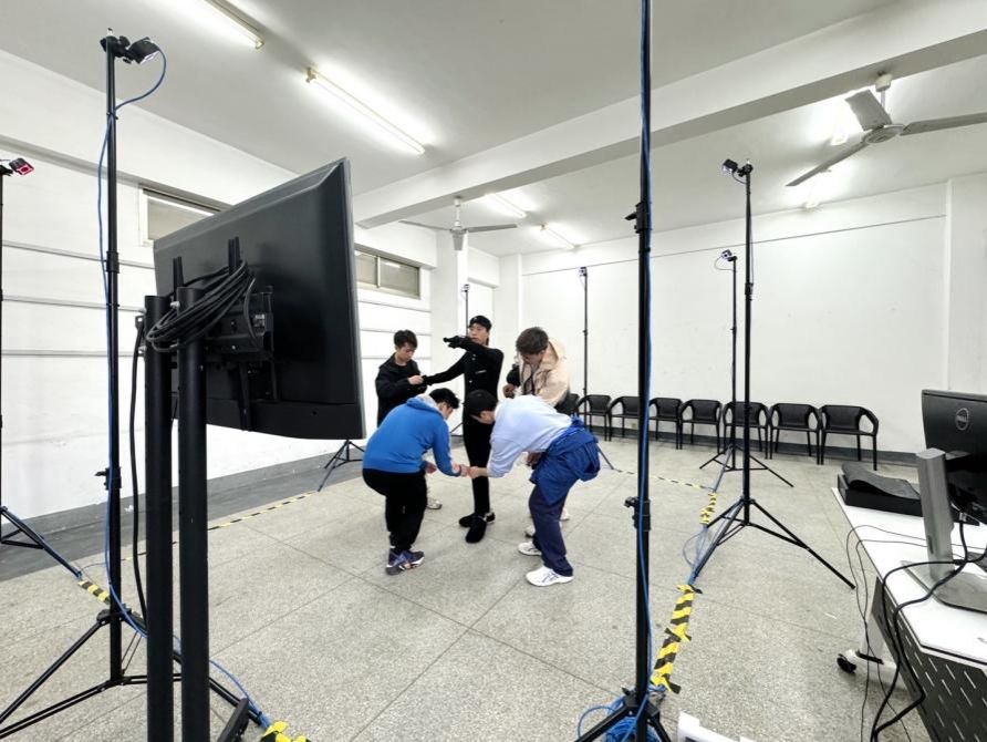 图四(我院数字媒体专业学生进行动作捕捉团队作业练习)