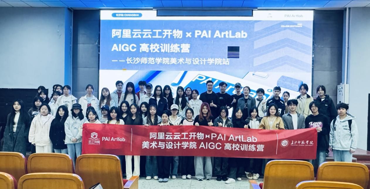 11月12日,数字媒体艺术专业大三的部分学生,在教研室主任梁可嘉老师的带领下,前往长沙师范学院共同参加了由阿里云精心筹办的PAI ArtLab AIGC高校训练营。本次活动主题为“AIGC设计新范式与实践”,旨在探索生成式人工智能(AIGC)在设计领域中的创新应用,并推动高校与产业的深度融合,为学生提供宝贵的学习与实践机会。