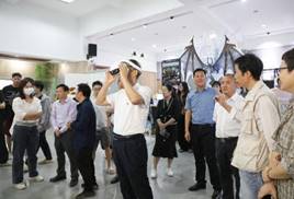 5月17日上午,校党委书记刘铁铭,党委委员、副校长陈志国,党委委员、副校长刘铁峰,党委委员、纪委书记凌艳平在党政办主任李玲军、宣传统战部常务副部长谢柳等陪同下来到逸美楼二楼展厅参观“起航”数字媒体艺术2023届毕业设计展,美术与设计学院领导班子及师生陪同参观。