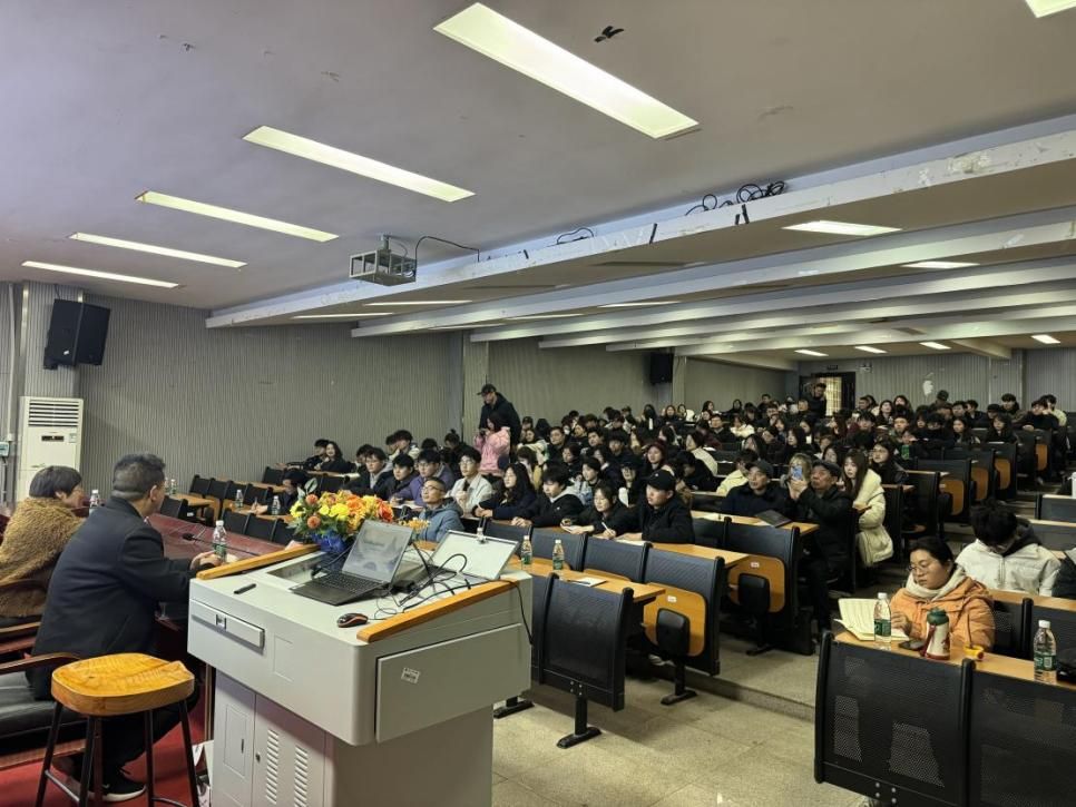 活动现场,书法学专业全体师生济济一堂,更有学院教师及娄底本土书法爱好者慕名而来,百人报告厅座无虚席。曾峰先生以“十年磨一剑”的躬耕精神为引,结合其荣获“卫士之光”全国展一等奖、魏碑圣地全国展二等奖等国展殊荣的创作经历,展开了一场沉浸式艺术对话。他从“临摹的深度”切入,强调“入古愈深,出新愈奇”;谈及创新维度,他以自身草书作品为例,剖析如何在章法虚实、墨色枯润中植入当代审美意趣,提出“情感是笔墨的呼吸,时代是书写的脉搏”的创作观。针对书法学子的困惑,曾峰重点阐释了“文心与技法的共生关系”:“若仅锤炼点画,作品终是‘无根之木’;唯有在诗词文史中涵养胸襟,方能以书载道。”其深入浅出的讲解,辅以历年国展佳作投影解析,令在场师生如沐春风。