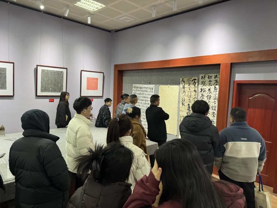 活动结束后,曾峰先生移步学院书法博物馆,对学生的临创作品进行“一对一”点评。他驻足于学生作品前,从线条质感谈到空间节奏,并鼓励学子:“参展不是终点,而是以展促学、以展明志的修行。”