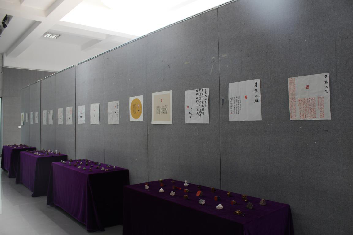 书法学专业本年度校企合作实践教学主要从四个方面开展教学,15级分为两个方面:碑拓制作和陶瓷篆刻艺术创作,16级为文田镇尺雕刻,17级为实地考察美术馆和博物馆。本次展览全面立体的展示了书法学专业校企合作实践教学的成果。本次展览时间将持续至7月4日。