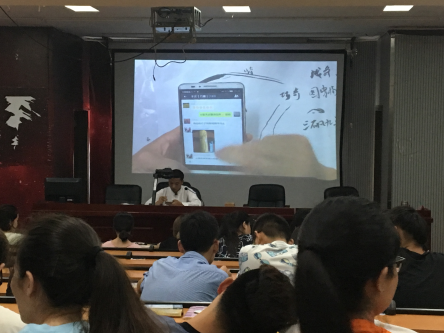 宁亮成老师从竹子的结构、生长习性以及竹子的各种种类进行一一讲解。他指出,当下最为流行的为留青竹刻,和我们书法专业的篆刻大同小异,有着异曲同工之妙,分为阴刻和阳刻,并且结合多媒体为学生进行了图文并茂的讲解。
