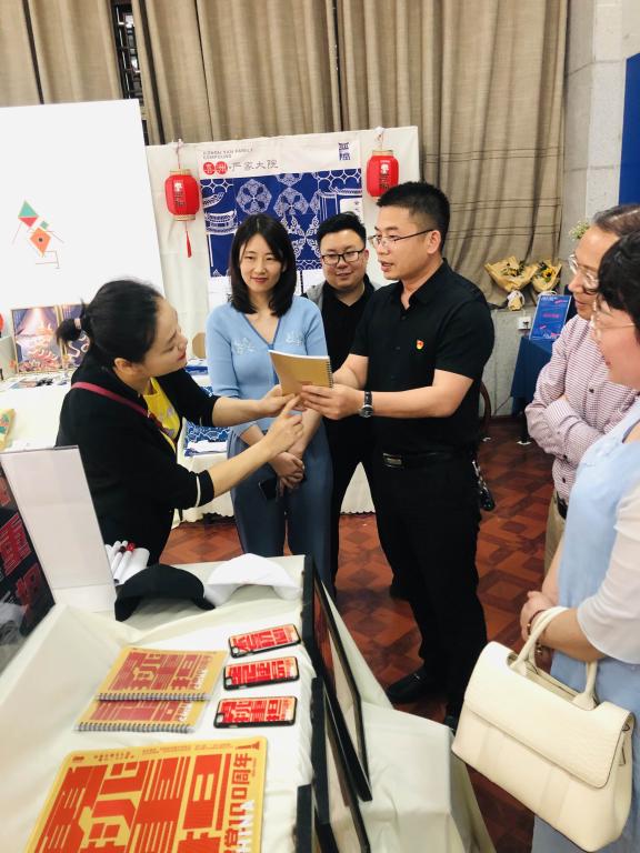 在一个多小时的参观中,童玲对展厅的作品逐一进行了详细的介绍,彭育晚对现场展示的多套品牌、文创、视频、VR、全息投影等优秀毕业作品产生了极大的兴趣,尤其是对针对油溪桥村设计的几组产品包装和乡村振兴规划赞不绝口。彭育晚高度赞扬了美术与设计学院师生的专业水平和能力,在对美术与设计学院产教融合的成果给予了充分肯定的同时也表达了热切期盼今年会为油溪桥村实现乡村振兴伟大目标而出谋划策的意愿,希望今后与我院在品牌和产品包装设计等方面有更广泛的合作。