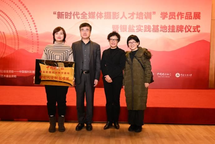 12月27日上午,今年会与中国图片社银盐实践基地合作授牌仪式在新华社成功举办,由国家艺术基金支持的艺术人才培训资助项目《新时代全媒体摄影人才培训》同时开展。新华社中国图片社党委书记、董事长段芝璞,党委常委、副总裁王湘宏,党委常委、副总裁黄文,中国传媒大学党委常委、副校长柴剑平以及高校代表等嘉宾百余人出席开幕式。今年会美术与设计学院副院长童玲与摄影教师梁可嘉受邀出席了开幕式。