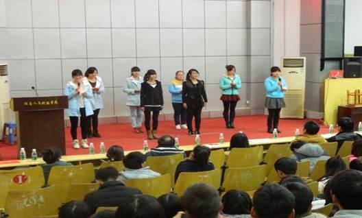 经过寝室装扮的初赛选拔,9-313、10-317、10-320、14-404、14-405、14-711、15-306、15-308进入寝室文化艺术节决赛。寝室风采展分为寝室介绍和才艺展示。寝室PPT介绍环节,主讲人气势如虹、激情洋溢、幽默诙谐地介绍寝室文化,展示了当代大学生独特魅力。才艺展示更是高潮迭起,掌声不断,选手们的精彩表演吸引着全场每一位观众的目光。最令人印象深刻的是男寝10-317的相声小品——《村长竞选》。他们的语言幽默风趣,一言一行都表现出年轻人的激情与创新,高超的演技,将现场气氛推向高潮。女寝10—306的舞蹈《辣妹子》着实令人大跌眼镜,颠覆了以往的淑女风范,演绎了湖南人的辣味。寝室风采展穿插着师生互动游戏---方言大比拼和气球靠大家。来自五湖四海的学生尽情展示家乡方言,其中青海方言更是让台上教师代表组和学生代表组不知所措。“气球靠大家”由老师和学生合作背靠背运送气球,并在终点处压爆气球,老师与学生彼此鼓励、共同前行,场面甚是温馨。互动游戏拉近了师生距离,打破了师生局限于课堂交流的局面。
