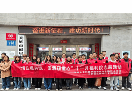 11月17日下午,农业与生物技术学院青工部成员同党支部成员、志愿者们,共同前往娄底市社会福利院开展了一场别开生面的探访活动。此次活动旨在通过互动交流,为福利院的孩子们带去知识与欢乐,向他们传递来自社会的关心与关爱。