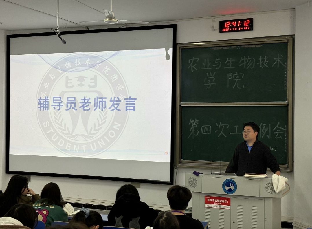农业与生物技术学院团学会于2025年4月2日在致远楼119召开第四次工作例会。会议由全体辅导员老师及团学会全体成员共同参与,此次会议共四项议程。