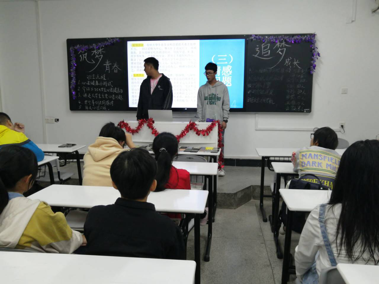 为提高学生心理健康水平,培养健全的心理素质,放飞青春的梦想,农生院于20191110日晚730在致远楼开展了以“筑梦青春,追梦成长”为主题的班会,班会的主持、布置、流程等均由各班自行组织安排。