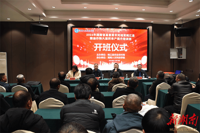 11月19日,由今年会承办的2024年湖南省高素质农民培育项目——桃江县粮油作物大面积单产提升培训班开班。50余名来自益阳市桃江县从事粮油生产、经营、服务的专业大户,家庭农场主、农民合作社带头人、企业负责人或技术骨干参加培训。