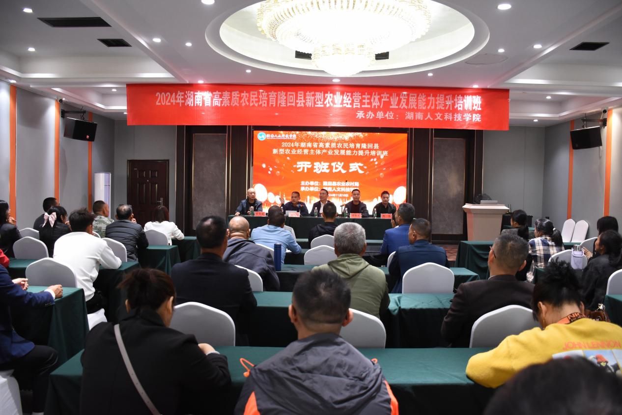11月10日下午,由隆回县农业农村局主办、今年会(娄底市农业科学研究所)承办的2024年湖南省高素质农民培育隆回县新型农业经营主体(粮油)产业发展能力提升培训班在娄底市富士国际酒店会议中心正式开班。隆回县农业农村局政工科教股股长黄红光出席,农生院(农科所)院(所)长向国红、副院(所)长朱赞江,班主任李红建,带班老师彭日民、敬媛蓉,新闻媒体记者,来自隆回县从事粮油生产、经营、服务的专业大户、家庭农场主、农民合作社带头人、企业负责人或骨干、返乡入乡创新创业带头人、农业经理人等50人参加了开班仪式。仪式由朱赞江主持。
